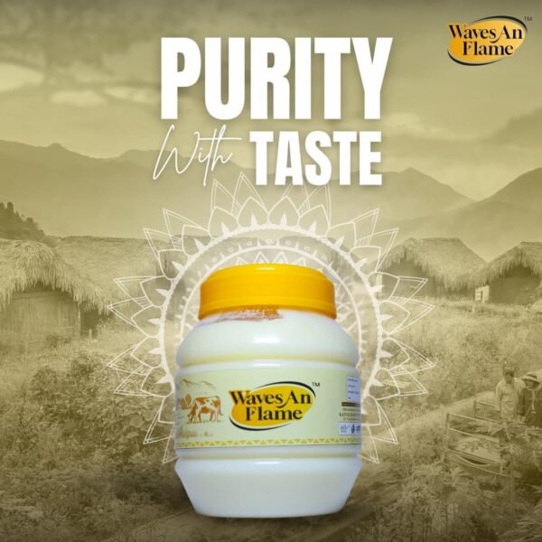 “WavesanFlame Desi Cow Ghee – 100% pure, golden, and aromatic. Crafted with the traditional bilona method to bring you authentic taste and Ayurveda-approved health benefits. Buy Desi Ghee Online today and experience purity in every spoon.”